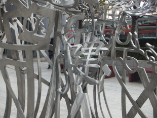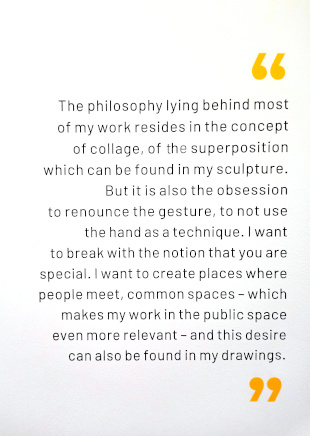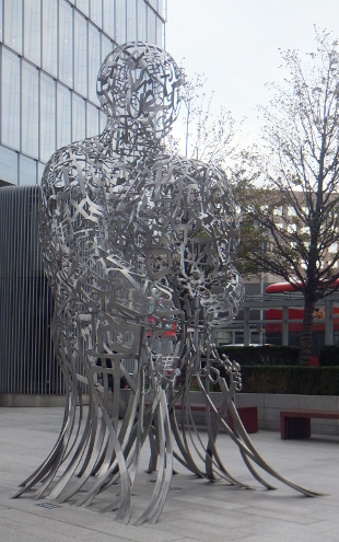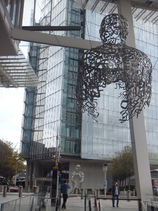 LOOKING FOR MORE Reviewed by ANDRE BEAUMONT ![]() Entrance to the British Library's courtyard - a sophisticated and reassuring space adjacent to a very busy main road ![]() Always more the other side, more knowledge, more money? - It's reality flipped, a human construct, the eye of a needle .... walk straight through ![]() As you are the Nomade From September 2021 London has had its own pair of Jaume Plensa statues but whereas the Nomade towers over his surroundings the London pair is towered over and contends with almost monochromatic conditions in certain weather. ![]() One hangs by the thread under the Shard and the other faces it. ![]() Hieroglyphic head up display Given the limitations of the townscape, despite efforts, the pair are very well placed to add some animation to their environment. This is a place with still some potential. By osmosis it could become more sophisticated. ![]() ![]() More Plensa now and more than letters ![]() Birdlike will you fly? ![]() Or levitate? ![]() ![]() Or face the obelisk? ![]() ![]() Knowing you hold the key to the Needle on the other side ![]() ![]() The courtyard of the British Library viewed through the perspex of the model I have always liked three-sided courtyards. They give the enclosure that gives a sense of security but let in light and the enticing vistas of possibility that space leaking out can give. ![]() Model reconstructing the Roman temple at Vaugrenier viewed through perspex ![]() The space created by the intersection of roads in front of the Bank of England Near the Bank of England, before the Royal Exchange and the Mansion House, there is a nine-way confluence of roads that creates a space that forever leaks outwards, delivering the most sophisticated architectural space in London. Not just a melody but a Beethoven's Ninth. The latest tower is an intrusion but we will grow to live with it. At the British Library it is a space in the courtyard idiom, one with which the architect was well familiar. Two sides of the site have incredibly noisy and polluting roads thundering by, more so than when the library was conceived when diesel cars did not exist, but the road by the more open side is surprisingly unbusy. The chequer grid continues into the library. At the Shard there are currently unfortunate elements, mainly relating to the materials used in road engineering and to bus stops, but the bones of a space that can be honed are there. Space does leak out in a number of directions but some of the bounds are different - they are the verticals or in the case of the Shard, the most important, an inclined vertical. ***** We are walking through the eye of the needle provided by the coronavirus and the reality needs to flip, has to flip, once on the other side. No more do we want to see the world for the joys of land values, the beauties of work or the delight of activists thralled by insulation and diesel engine manufacturers, stitched together by a liberal construct of working together to file balanced books in the library of targets. Peppa Pig can leave business to look after itself, as it can very well without gooning government to its service and subsidy. Government can go back to the easier task of just mainly holding the ring. We need to look for more, to the cultural value of things and people. ***** ![]() Jaume Plensa Beyond Plensa, collage is art's revolt against the serialisation of the business world and digitalisation. It is fragile in more than one sense. It steals (as Eliot would have it) from both of these and makes the human and the unique. It makes do and makes good. As did the coronavirus, it reasserts the primacy of the individual over business values. Not over the community, true, but over the corporate. During the virus neither academic institutions nor businesses properly stood behind those who came forward with developed views - they spoke or had to speak 'in a personal capacity'. Politicians came forward with some wacky views - but that is perhaps to be expected given the advice they were given. Now we trust those who knew what they were talking about and they were mainly individuals. It was mainly individuals, too, who stuck out their necks to get vaccines developed. Institutions and corporations have not regained their mojo. They have their places. Collage is the graffiti on the wall, saying something different. To serially reproduce collage is to misunderstand the drift of culture in 2022. ![]() Jaume Plensa, Macbeth V, 2000 Britain is at the extreme of a society which has substituted business systems for expertise which is why it is struggling in so many areas where it used to be the innovator of the world. Business systems are very efficient until you really have to think. Many at the top of business do not want middle rankers with expertise, or who can think, at all. They are a threat; they might work out how they really make money. Defensible intellectual property is not expertise. A profession like architecture, which produced the Shard, is termed part of the creative industries but to call a profession part of an industry is to diminish its expertise and, paradoxically, its creativity. So the age of the individual is the revanche. A gullible politician would go to a business conference and promise all sorts of costly things in a back room. Boris, one surmises, had the nous not to promise billions and changed the subject to Peppa Pig. If politicians want to oversimplify they may as well be part of the entertainment industry. Artists know a bit more about that. Artists are now very much under attack by business systems. The British ones are beginning to lose their edge. Defensible intellectual property rules music so fewer and fewer musicians make worthwhile money but choose your own example. You cannot serial produce collage and fly to the pinnacle. |