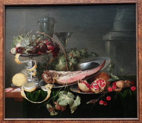 DE HEEM STILL LIFE Reviewed by ANDRE BEAUMONT For anyone wondering how to do still life well, Jan Davidsz de Heem provided a masterclass, all within the pigments and paint technologies available in the 17th century. The exhibition comprised six de Heem paintings, including two smaller ones belonging to the Fitzwilliam Museum, within whose Dutch School room it was held, and four large paintings that comprised an experiment by de Heem following his move to Antwerp in 1636, where he saw larger format works. These large works have been on loan to the museum for the exhibition and have not been seen together. ![]() ![]() ![]() Modern paints do not contain the heavy metals and toxic materials he used - this to some extent reduces their vibrancy ![]() Fruit and Rich Dishes on the Table, 1640, The Louvre - the first of his large paintings ![]() Still Life with Servant and Parrots (human figure by T W Bosschaert), 1641, Brussels City Museum ![]() Still Life in a Palatial Setting, 1642, private collection UK ![]() Although architectural features in the paintings are clearly imaginary, the steeple in the distance represents Antwerp cathedral ![]() A Banquet Still Life, 1643, Frederick Iseleman Art Trust The smaller paintings are significantly smaller but the detail shines: ![]() ![]() ![]() Flowers in a Glass Vase, c. 1660 ![]() |
