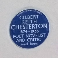 THE POINT OF A PIN Reviewed by ANDRE BEAUMONT Sherlock Holmes and Father Brown are two of the great figures of short form detective fiction. From their limitations spring some of their strengths. Holmes has great observational powers. He is peerless in deducing from observable facts. He has spurts of great energy and he is the master of disguise but his understanding of people can appear thin. Father Brown comes from the opposite direction. He understands people and human nature, or at least that is the literary conceit. His powers of observation are not lacking, though. He bumbles along, reserving celerity to a few occasions. So it would be fun doing a bit of literary detective work with none of these powers. Just a curiosity about buildings might suffice. For novels, people hunt down the imaginary loci of scenes to possible sites where the author might have been. For Sherlock Holmes short stories they do as well. For Father Brown short stories? - I haven't heard of it, despite erstwhile being very popular. The Point Of A Pin begins: Father Brown always declared that he solved this problem in his sleep. And this was true, though in a rather odd fashion; because it occured at a time when his sleep was rather disturbed. It was disturbed very early in the morning by the hammering that began in the huge building,or half-building, that was in the process of erection opposite his rooms; a colossal pile of flats mostly covered with scaffolding and with boards announcing Messrs. Swindon & Sand as the builders and owners. Building sites, which are dangerous places, an unlikely death threat from trade unions, builders who make good and receive honours, changing building technology and the pot is stirring nicely and on familiar ground. G. K . Chesterton's house On familiar physical ground as well. I have known where Father Brown's creator G. K. Chesterton's house is since forever and this story since nearly as long. The Point Of A Pin was one of the last Father Brown stories and written in 1935, in the year before Chesterton died. There was far from anything wrong with his literary powers - it is one of my favourite Father Brown stories - but by then he was probably at his least physically active. The block of flats opposite his house was built contemporaneously with the writing of the story. Although other blocks were built in the road about the same time none fits the building described in the story as well as this one so given he probably did not move far from his home, this is the block he is writing about in its half-finished state and his imagination. At the end of the story there is some artistic license that might make you doubt it - but we are dealing with fiction probably written before the scaffolding was removed. Whether the residents opposite his house realise that their block is the locus for imaginary darstardly deeds is open to doubt. Now doubt may turn into a pinprick of belief, as this detective would like. After all, Father Brown was strong on belief. Opposite ***** Who can say what other local history inspired Chesterton and this story in particular? High Victorian St Luke's Church, Redcliffe Gardens, listed Grade II in 2003 The developers of Redcliffe Gardens went bankrupt partly due to offering to build and pay for St Luke's Church, creating a new parish in the process. They would appear to have grown grand enough before doing so and one of them had lent his name to stand behind the debts run up by the vicar in relation to the construction. The tower and the pin-like steeple are a Victorian structure one would not want to lose. |