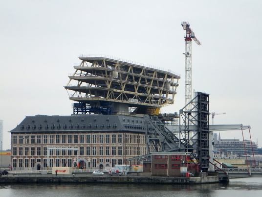 ANTWERP AT EASTER Reviewed by ANDRE BEAUMONT Antwerp is a good destination for Easter. The city authorities keep open the museums and many other attractions on the bank holidays and the open spaces of the city soak up any number of visitors without ever seeming to outnumber the locals. The opening of Rubens In Private was the star event of Easter 2015. Subtilted 'The master portrays his family' this exhibition draws together dozens of paintings and drawings of Rubens and his family, mostly by him, in his own house on Wapper. This exhibition deserves a review of its own but since the catalogue is only in Flemish a stab at it will not be made here. Since it is of international stature (it has the most famous of the Rubens self-portraits, loaned by H.M. The Queen, for example) and continues to run until the end of June it can still be visited. Nonetheless, any visit to the Rubens Huis deserves some attention paid to the grand buildings of his house and studio, a curious mix of Flemish and Italianate design, some by his own hand (the portico, garden pavilion, sculpture gallery and studio). One of these is the garden pavilion which is due to undergo some renovations and so deserving of some examination in case something changes and as one of the few buildings by Rubens as opposed to facades. A facade only by Rubens, probably his most successful, can be found nearby at the church of St Carolus Borromeus. It may surprise some, but the rest of the church is entirely by others. Facade of St Carolus Borromeus Also really not to be missed was fashion designer Dries van Noten's Inspirations, which runs until mid-July at Antwerp's ModeMuseum, better known as MoMu. This is the first time his work is displayed as a static exhibition and covers inspirations for his extensive lifetime work. Exceptionally for MoMu, there is no catalogue at all. MoMu An unintentional play of light but an 'Antwerp hand' appears disembodied The exhibition space is kept in the dark, the exhibits largely lit by spotlights and with some limited use of audiovisual. Gold inspiration The oeuvre is displayed alongside decorative and fine arts to highlight his stylistic vocabulary and the range of his techniques. Dries van Noten was one of the first to bring an enterprise to the Willemdok in the regeneration of the Het Eilandje district. He operates from a gigantic dockside warehouse near the MAS museum. MAS or Museum Aan De Stroom (Museum on the River) Antwerp is not just culturally rich. It is the world's biggest diamond trading centre, has Europe's largest petrochemical complex and its second largest port. To understand the city one has to learn about the port, which can be done either by visiting the permanent exhibition about it in the MAS or by going to see the real thing. A new port authority building is rising just behind the Hansa House at the end of the Kattendijkdok. Its lattice structure echoes a diamond, its concrete support the keel of a boat. Along with the MAS some really exciting contemporary architecture is rising at strategic points in the old docks. |