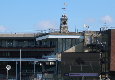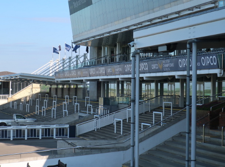 WEST SUFFOLK SPRING Reviewed by ANDRE BEAUMONT The first day of the Craven Meeting, this year on 16 April 2019, is when racing starts on the Rowley Mile for the year in Newmarket. First race winner crosses the line The winner, Maqsad The head on stand, the oldest part of the racecourse Bookmakers on the rails ahead of the second race Judges' box, on the left, opposite the winning line Cantilevered roof The eventual winner of the third race, Shine So Bright, in the parade ring before the race Going out onto the course The crowd builds up Distinctive-tailed Shine So Bright crosses the line from Space Traveller So on to the Tattersalls Guineas Breeze Up on the Rowley Mile on 2 May 2019. The Rowley Mile winning post from the head on stand You must believe in .... Make Believe (GB) colt Acclamation (GB) colt The Millennium grandstand. Iffraaj (GB) colt video Two days on, for the Guineas meeting, it will be packed. Battle of Marengo (IRE) colt video Helmet (AUS) colt video The old weighing room |