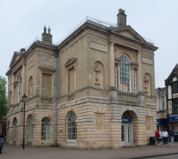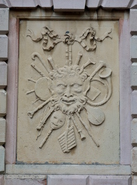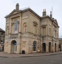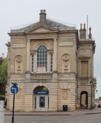 He is better known for his elegant interiors but the town is lucky to have here four external elevations by him, to all intents and purposes intact. Two of the panel contain music motifs.