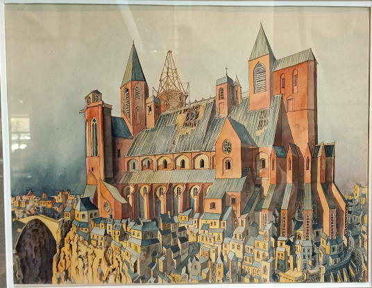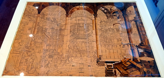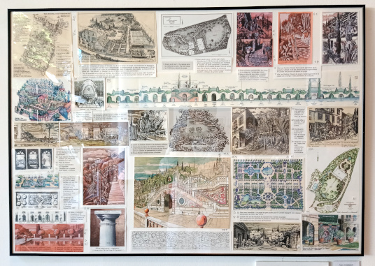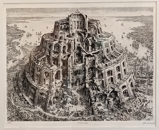 ALAIN COMBIER: ARCHITECTURES Reviewed by ANDRE BEAUMONT ![]() (Lower image: La Funiculaire, 1985) ![]() (read on under drawing board) ![]() ![]() Suffice to say, he's right - reflections are the bane of exhibitions, especially for photography - but everything else he says is fascinating! (I am assuming, in 2025, your electronic device can translate for you, if needed) ![]() ![]() ![]() It is worth noting that though his formal education went elsewhere he had always wanted to do fine arts and so in that area he is entirely self taught. As soon as I saw he liked Tuscan columns that was enough for me. So do I. More seriously, if you are doing landscape architecture you have a fair chance of getting your conceptions realised. If you are doing architecture or naval architecture, somewhat less and if you are a grand conceptualiser in drawings, like Ledoux or Piranesi, virtually none but your influence can stretch through the centuries. If you are a politician you may have pharonic ambitions to have something named after you, like the Pompidou centre, (though every other academic lawyer I have met in Cambridge has claimed responsibility for having brought about the building of the law faculty) but may not be skillful enough to get your name attached - Ken Livingstone did more to bring about the 2012 Olympics in London but Boris got most of the credit. Who will ever end up with his name on HS2? Nigel Farage? It won't be Brexit he will be remembered for but exit at Old Oak Common. Returning to the higher achieving M. Combier, the grand conceptual drawings he has been doing for 40 years alongside his professional work are in the Piranesi mould. He is influenced by Ledoux's Ville Ronde, which he imagines (the drawing where the sailing ships cannot escape), and the library is an imaginary building in that town. This kind of drawing is rare in today's world but anchors us properly in our heritage - his father did archaeological work on which he also drew - in a time when AI threatens to create anything, though lacking in any anchors so that it might as well be on Mars, for that is where the tech lords want to go. His is a pretty kind of joyful drawing. Especially so as he seems to have done them for no monetary reason, an ocean away from neoliberal values that seeks to assign a numerical quantity to everything which, in the next phase, reductio ad absurdum, tech will reduce to a binary code. ![]() Ville Ronde ![]() The Library ![]() The Library - light study, 1991 ![]() The Library - perspective study, 1991 ![]() Engraving of the tower of Babel or the tower of 170 metres,1999 ![]() The brick cathedral, 1979 ![]() |