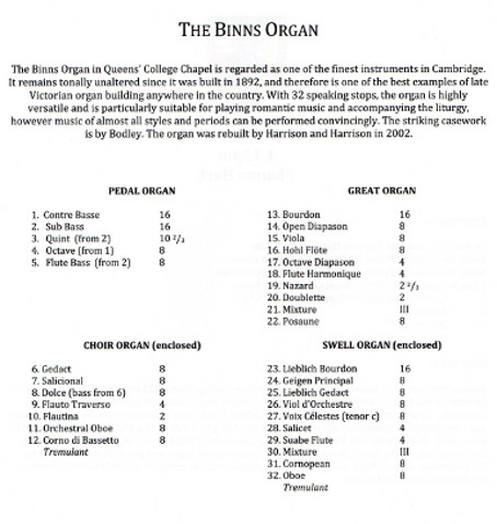 Hugh Rowlands has just been playing Jehan Alain's Le Jardin Suspendu, real ethereal stuff, on the Victorian-sounding organ, in Queens' College Chapel by George Frederick Bodley.