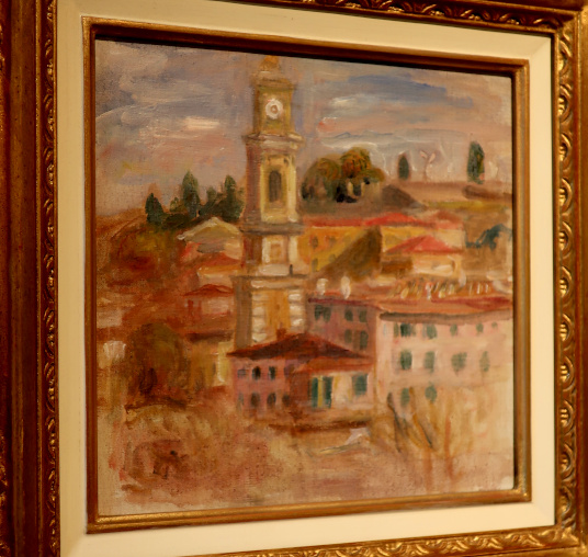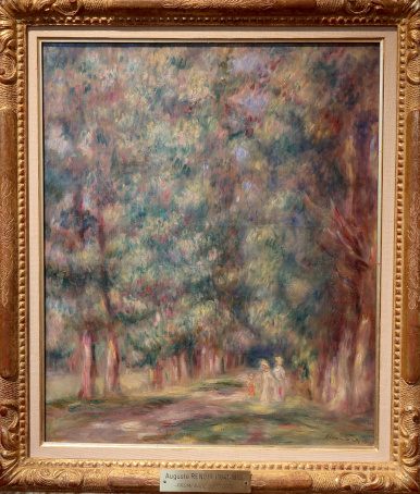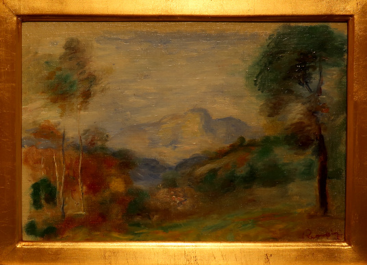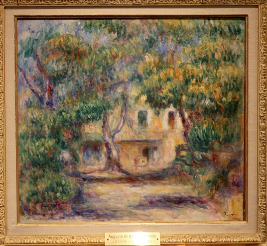RENOIR MUSEUM Reviewed by ANDRE BEAUMONT ![]() The Renoir Museum is found in his last home in Cagnes-sur-Mer, near Nice, and designed for him by an architect in neo-Provençal style on farmland he acquired around 1906 to whose centennial olive trees he was attracted. The parkland can make it a pleasant day out for visitors. ![]() The south elevation shows the dropped floor level of the studio within - where he painted with some difficulty and often with assistance as he had rheumatoid arthritis. ![]() The first floor has related painting seeking to give context to his life here and the basement floor contains sculptures produced in collaboration with Richard Guino but this review focusses mainly on showing the paintings attributed as in his own hand, at the museum in 2025. ![]() ![]() Pierre-Auguste Renoir and Richard Guino, Madame Aline Renoir, 1916 ![]() Roofs of Nice Old Town from a window in Nice, 1918 ![]() Portrait of Madame Pichon, 1885, loan from Musée d'Orsay ![]() Young Woman at the Well, oil on wood, 1886, loan from Musée d'Orsay ![]() Seated Nude, 1895, loan from Musée d'Orsay ![]() Les Grandes Baigneuses, 1903 - 1908, loan from Musée d'Orsay ![]() Coco Reading 1905, loan from Musée d'Orsay ![]() Portrait of Madame Colonna Romano, 1910, loan from Musée d'Orsay The Impressionism has declined from Place Clichy, which invites the brain to fill in so much, to Madame Romano, which has distinctly classical references and by which time he would have been resident in the house here. Then you come to paintings done in the locality or possibly so. ![]() The Cagne Valley and Saint-Jeannet, 1905 Having seen the valley no later than 1905 he bought the Collettes farm in 1906, which you can see from the house a hundred metres away, and which is in the 4 hectacres of the park. Aline Renoir, however, wanted to live in a house so it was built in 1909. ![]() The Collettes Farm, 1910 ![]() The Collettes countryside, c.1910, loan from Musée d'Orsay Though one of the last two is given as being from the period he was living here I would have doubt as to them having been painted here. You do not get such woods or fruit hereabouts. ![]() Walk in the woods, around 1910, loan from Musée d'Orsay ![]() Still Life of Apples and Almonds, undated, loan from Musée d'Orsay |