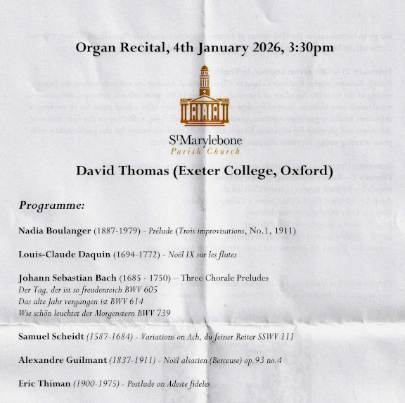 WELCOME to the MUSIC pages of WORLD REVIEWS! We have the following reviews in this section: Click here for MUSIC0016/0324 ELECTRO // ACOUSTIC DAY Reviewed byANDRE BEAUMONT Click here for MUSIC0015/0121 MONUMENTS 2022 Reviewed by ANDRE BEAUMONT Click here for MUSIC0012/0220 ACOUSTIC EXPEDITIONS: ORGAN MUSIC 2020 Reviewed by ANDRE BEAUMONT Click here for MUSIC0011/0317 PARIS IN THE RAIN Reviewed by ANDRE BEAUMONT Click here for MUSIC0010/0317 ALBERT LEE Reviewed by ANDRE BEAUMONT Click here for MUSIC0009/0815 SARAH McKENZIE Reviewed by ANDRE BEAUMONT Click here for MUSIC0008/0125 CLANNAD: "LEGEND" Reviewed by DAVE FRANKLIN Click here for MUSIC0007/1224 DAMIEN RICE: "O" Reviewed by DAVE FRANKLIN Click here for MUSIC0006/1124 SANTANA: "ABRAXAS" Reviewed by DAVE FRANKLIN Click here for MUSIC0005/1123 IRON MAIDEN : "DANCE OF DEATH" Reviewed by DARIEL SUAREZ Click here for MUSIC0004/0123 MUDVAYNE : "THE END OF ALL THINGS TO COME" Reviewed by ZAC BORROWS Click here for MUSIC0003/0922 THE STROKES : "IS THIS IT" Reviewed by JEREMY WORTH Click here for MUSIC0002/0120 LES SECRETS DE MORPHEE : "CHUCHOTEMENTS" Reviewed by KARSTEN HAMRE ![]() Very experienced organist closing out the days of Christmas |