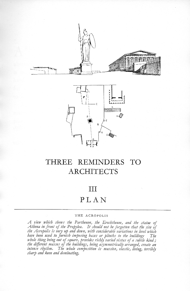 MANIFESTO Reviewed by ANDRE BEAUMONT Sir John Summerson was one of the 20th century's best architectural critics. As a schoolchild I hoped to one day design at least one facade following the classical rules as set out in his The Classical Language of Architecture. I did meet him when writing a dissertation on Robert Adam and was warned twice in advance that 'he isn't an Adam man' and 'he's not all that keen on Adam, he prefers Laugier' which was all the more remarkable because by that time he had been curator of the Sir John Soane's Museum for over 30 years, which institution owned the Adam collection of drawings. Adam had been the most important architect of the second half of the 18th century in Britain whilst Laugier, a Jesuit priest, had built nothing. Sir John's influence (and Le Corbusier's mention of him in Vers Une Architecture) placed Laugier high in the regard of architectural educators of the time, where he may still be and perhaps rightly, but it still would have been more fun and educative if the exercise had been set (as it had been to previous generations of architects) of designing at least one building in the classical style. A single Leonardo drawing costs a museum many millions to acquire. If Sir John had directed his unquestioned critical abilities to writing a little more about some of the 8000 Adam drawings in his care, given their rarity outside the collection, the nominal value of the Museum's collection would probably now be many millions more. In my first job on leaving university I was given the task of making alterations to the structure of the St Pancras station booking hall. An additional opening had to made onto the concourse so I designed an exact replica, with replica doors, to what was in the next bay. On the street side, a large opening had to be filled so I designed a replica of the stone Neo-Gothic windows. Obvious enough but to my astonishment the chief of the design office later called me in to give me a letter of congratulation that had been received from the Victorian Society. Only then did I fully twig that nearly all other alterations to the station had bodged in excrescences and newly cut rectangular openings for modern doors and that the design was going to be expensive. Fortunately, the railway soon recovered the cost, and more, by hiring out the booking hall and nearby platform from time to time as a film set until the later restoration of the whole station associated with the Channnel Tunnel link ended the use of the old booking hall and moved the tracks. So, for instance, in Howard's End, everyone makes off to Paddington to catch a train whilst in fact it was shot at St Pancras with lots of dry ice to simulate steam as the booking hall was one of the few places with something close to an authentic Victorian station interior. Le Corbusier was essentially right though - from the birth of modernism through to the beginning of the nineties, when the period of architectural pluralism in which we live started, the "styles" had nothing to do with "Architecture" as defined in his Vers Une Architecture (or Towards a New Architecture as it is universally known in the English speaking world). Anybody genuinely designing anything in a style - Classical, Neo-Gothic etc - was really making an excursion into a stage set. The building technology of the time did not allow you to efficiently design in a "style." To do so was a costly exercise cutting across the spirit of the age. So which is the page of a manifesto that made the greatest effect on the 20th century? To me it is the following: ![]() It is not expected that everyone will understand it anymore that everyone would understand a score by Bach. That is not essential. The important thing is that one notices one is dealing with a good critic, a very good one in fact. As T.S. Eliot wrote: From time to time, every hundred years or so, it is desirable that some critic shall appear to review the past of our literature, and set the poets and poems in a new order..... Dryden, Johnson and Arnold have each performed the task as well as human fraility will allow. Eliot avoids saying he is one such but he was. In architecture, he had a contemporary doing much the same thing, Le Corbusier, a critic of a hundred years. The Waste Land of 1922 and Vers Une Architecture of 1923 change the world for ever. It is hard to think of someone who influenced the 20th century as much as Le Corbusier. Hitler and Stalin and Mao, probably, but in a very negative way. Summerson acknowledged that the revolution brought about by modernism was the greatest in the history of architecture. Both Eliot and Le Corbusier were artists and critics of the first rank. To be so puts them in the frame of immortality alongside the likes of Newton, Mozart, Kant and Shakespeare. Baudelaire and Coleridge were also of the first rank as both. Critics of this first rank are rarer than artists of the first rank. Having some experience of the art of which you are a critic is extremely important to someone seeking to be a first rank critic. Matthew Arnold was a critic of poetry, like Eliot, of absolutely the first rank but only a second rank poet. Nonetheless, his experience of poetic writing allowed his critical judgement to be almost unfailing. F.R. Leavis, on the other hand, was an excellent critic of poetry but not of this unfailing judgement. He was not a poet. Eliot, in trying to find an argument for being able to limit good criticism to good practitioners, and failing, comes to a somewhat different but important conclusion from the one he sought: And the most important qualification which I have been able to find, which accounts for the peculiar importance of the criticism of practitioners, is that a critic must have a very highly developed sense of fact. This is by no means a trifling or frequent gift. The conception of the importance of criticism is slipping from public consciousness but its return will be necessary as we move into territory wh