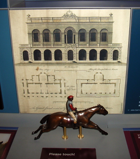 PALACE HOUSE Reviewed by ANDRE BEAUMONT Palace House's famous bay window fully restored Horses from the Retraining of Racehorses charity reside in the stables and visitors can meet them Twelve year old Starluck being retrained, possibly for dressage There is a polo pitch sized arena Architectural drawing for John Carr's 1756 grandstand building on York's Knavesmire Bronze of Phalaris, born 1913, ancestor of Nearco, Mill Reef, Secretariat.... Mill Reef. He is buried at the National Stud, adjacent to Newmarket's July Course Model of a thoroughbred's heart. Triple Crown winner Secretariat's heart was twice the size Bronze statue of Frankel in the King's Yard There were two two temporary exhibitions showing in June 2017, Chris Smith: Gods of Sport - Fifty years of sporting photography and Boxiana, prints of the pugilists' art. Henry Cecil and Frankel at Warren Place, 2011 Boxiana The shop: limited edition Monopoly and friends In November 2019 a very special exhibition came to Palace House which I attended the opening of: George IV Royalty, Racing & Reputation - of exceptional quality because nearly every exhibit was on loan from H.M. The Queen. As it runs to 19 April 2020, it deserves an excursion to Newmarket to see it. |