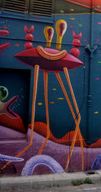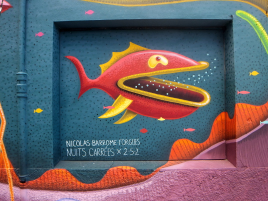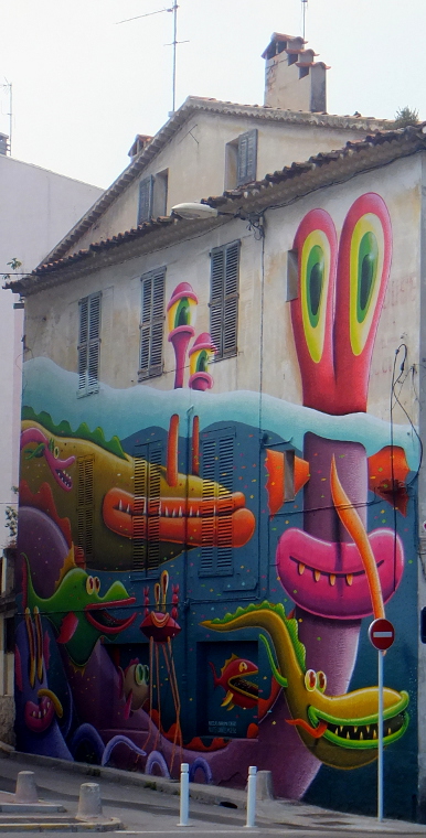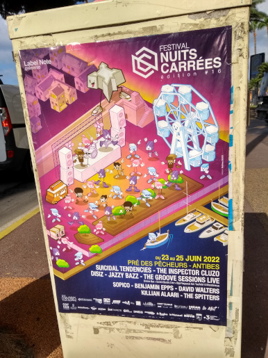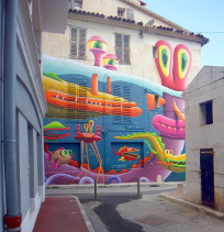 NUITS CARRÉES 2.5.2 Reviewed by ANDRE BEAUMONT The mural by Parisian street artist Nicolas Barrome Forgues was unveiled by the mayor of Antibes on 21 June 2018. It was created in association with the Nuits Carrées street music festival a week later and the collective 2.5.2. As external murals rarely survive long in pristine condition and the photographs were taken three weeks after, the work is recorded here. ***** ![]() Maybe you have to grant a certain musical rationality to the parsing of architecture ![]() 16th edition will take place in its new location, no longer at the Fort Carré but between the ferris wheel and the carousel, by the port ![]() Toutes les couleurs ![]() Conservatoire and theatre lie beyond ![]() Their artists include Monkeybird below: ![]() Permanent mural by the stencil artists with adjacent landscaping underway for the public gardens ![]() Couldn't resist a drop of the pun |