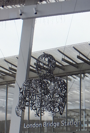 LOOKING FOR MORE Reviewed by ANDRE BEAUMONT ![]() Entrance to the British Library's courtyard - a sophisticated and reassuring space adjacent to a very busy main road ![]() Always more the other side, more knowledge, more money? - It's reality flipped, a human construct, the eye of a needle .... walk straight through ![]() As you are the Nomade From September 2021 London has had its own pair of Jaume Plensa statues but whereas the Nomade towers over his surroundings the London pair is towered over and contends with almost monochromatic conditions in certain weather. ![]() One hangs by the thread under the Shard and the other faces it. ![]() Hieroglyphic head up display Given the limitations of the townscape, despite efforts, the pair are very well placed to add some animation to their environment. This is a place with still some potential. By osmosis it could become more sophisticated. ![]() ![]() More Plensa now and more than letters ![]() Birdlike will you fly? ![]() Or levitate? ![]() ![]() Or face the obelisk? ![]() ![]() Knowing you hold the key to the Needle on the other side ![]() ![]() The courtyard of the British Library viewed through the perspex of the model I have always liked three-sided courtyards. They give the enclosure that gives a sense of security but let in light and the enticing vistas of possibility that space leaking out can give. ![]() Model reconstructing the Roman temple at Vaugrenier viewed through perspex ![]() The space created by the intersection of roads in front of the Bank of England Near the Bank of England, before the Royal Exchange and the Mansion House, there is a nine-way confluence of roads that creates a space that forever leaks outwards, delivering the most sophisticated architectural space in London. Not just a melody but a Beethoven's Ninth. The latest tower is an intrusion but we will grow to live with it. At the British Library it is a space in the courtyard idiom, one with which the architect was well familiar. Two sides of the site have incredibly noisy and polluting roads thundering by, more so than when the library was conceived when diesel cars did not exist, but the road by the more open side is surprisingly unbusy. The chequer grid continues into the library. At the Shard there are currently unfortunate elements, mainly relating to the materials used in road engineering and to bus stops, but the bones of a space that can be honed are there. Space does leak out in a number of directions but some of the bounds are different - they are the verticals or in the case of the Shard, the most important, an inclined vertical. ***** We are walking through the eye of the needle provided by the coronavirus and the reality needs to flip, has to flip, once on the other side. No more do we want to see the world for the joys of land values, the beauties of work or the delight of activists thralled by insulation and diesel engine manufacturers, stitched together by a liberal construct of working together to file balanced books in the library of targets. Peppa Pig can leave business to look after itself, as it can very well without gooning government to its service and subsidy. Government can go back to the easier task of just mainly holding the ring. We need to look for more, to the cultural value of things and people. ***** ![]() Jaume Plensa Beyond Plensa, collage is art's revolt against the serialisation of the business world and digitalisation. It is fragile in more than one sense. It steals (as Eliot would have it) from both of these and makes the human and the unique. It makes do and makes good. As did the coronavirus, it reasserts the primacy of the individual over business values. Not over the community, true, but over the corporate. During the virus neither academic institutions nor businesses properly stood behind those who came forward with developed views - they spoke or had to speak 'in a personal capacity'. Politicians came forward with some wacky views - but that is perhaps to be expected given the advice they were given. Now we trust those who knew what they were talking about and they were mainly individuals. It was mainly individuals, too, who stuck out their necks to get vaccines developed. Institutions and corporations have not regained their mojo. They have their places. Collage is the graffiti on the wall, saying something different. To serially reproduce collage is to misunderstand the drift of culture in 2022. ![]() Jaume Plensa, Macbeth V, 2000 Britain is at the extreme of a society which has substituted business systems for expertise which is why it is struggling in so many areas where it used to be the innovator of the world. Business systems are very efficient until you really have to think. Many at the top of business do not want middle rankers with expertise, or who can think, at all. They are a threat; they might work out how they really make money. Defensible intellectual property is not expertise. A profession like architecture, which produced the Shard, is termed part of the creative industries but to call a profession part of an industry is to diminish its expertise and, paradoxically, its creativity. So the age of the individual is the revanche. A gullible politician would go to a business conference and promise all sorts of costly things in a back room. Boris, one surmises, had the nous not to promise billions and changed the subject to Peppa Pig. If politicians want to oversimplify they may as well be part of the entertainment industry. Artists know a bit more about that. Artists are now very much under attack by business systems. The British ones are beginning to lose their edge. Defensible intellectual property rules music so fewer and fewer musicians make worthwhile money but choose your own example. You cannot serial produce collage and fly to the pinnacle. |