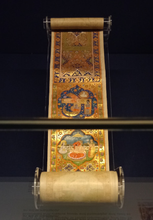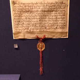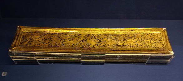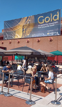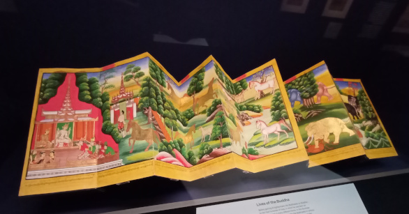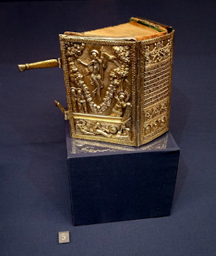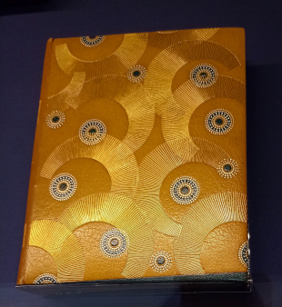 GOLD AT THE LIBRARY Reviewed by ANDRE BEAUMONT Gold, an exhibition at the British Library running from 20 May - 2 October 2022, is focused on the use of gold to illuminate manuscripts and for the binding and enclosure of books. 17 different languages are highlighted from 20 countries, dating from the 5th century to the 1920's. All artefact illustrations are images taken through glass in the soft, exhibition light. ![]() ![]() Saint Etheldreda founded the Abbey of Ely in 672. The Abbey was refounded in 970 and this book dates from 971. The present cathedral is on roughly the same site. ![]() The Octagon at Ely Cathedral ![]() Buddhist Thai lacquered gold book cover ![]() Lives of the Buddha ![]() Hindi scroll ![]() Armenian book cover ![]() Gold seal of Emperor Baldwin II ![]() Calicut diplomatic treaty with the Dutch on gold ![]() Art Deco binding on goatskin by Pierre-Émile Legrain ![]() Illuminated gospels