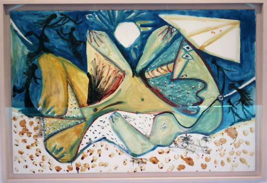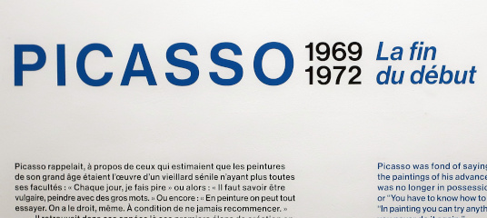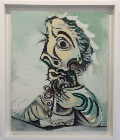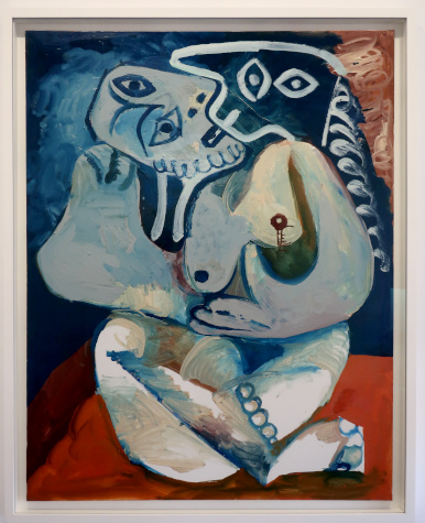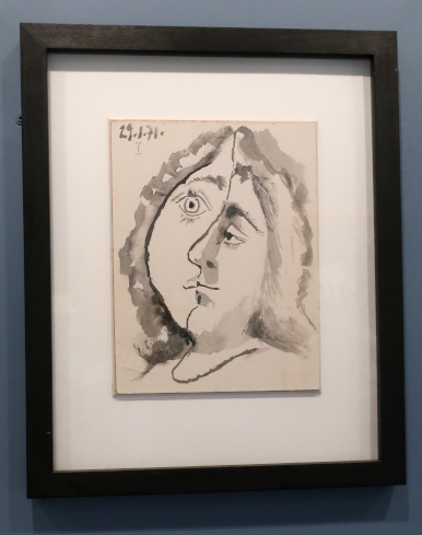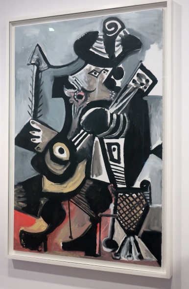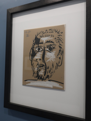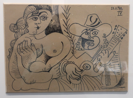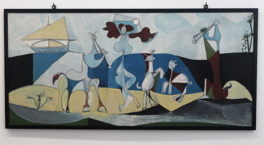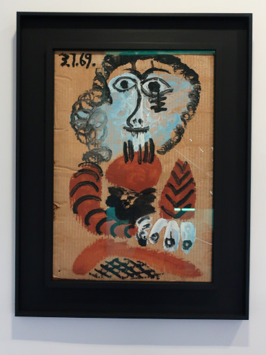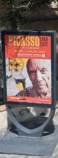 PICASSO 1969-1972 LA FIN DU DÉBUT Reviewed by ANDRE BEAUMONT 2023 is the fiftieth anniversary of Picasso's death in 1973. The Picasso Museum in Antibes has put on an exhibition of 41 works from the years 1969 to 1972, which were created in Mougins where he had his home and studio, and which is nearby. The works come from the Picasso museums in Paris and Malaga and from private and family collections. ![]() Wall text ![]() Head of a man, 1969, oil on corrugated cardboard Though they may look like some of the less finished works in the show, I took particular delight in seeing the works where he had not been precious about materials, especially the painting on cardboard above, ever so simple but in vibrant condition. We have to accept that the majority of visual art in the world will be ephemeral and so the preservation of unexpected fragments, not expected to survive, has its own allure. After all, quite a few of the paintings in the permanent collection, which date from 1946 when Picasso was resident in Chateau Grimaldi, the home of the museum, are on asbestos cement. Perhaps large canvasses were hard to come by immediately post-war and Picasso, who could paint and draw on anything, simply got on with it. ![]() These are the four other works, photographed through glass, on cardboard or mounted on cardboard. ![]() ![]() ![]() ![]() La joie de vivre, 1946, on asbestos cement (in the permanent collection) Back to oil on canvas, I like in particular the paintings that continue experimentation late into life. Unfinished some may look but they are studies in colour. He is an artist who is going to be continually reassessed because of the prolific stock of his output. ![]() Figure, 1971, (with two-dimensional speckles) ![]() Seated man (Mardi Gras), 1969 ![]() Reclining woman, 1971, has some three-dimensional speckled application of paint They are not necessarily the most sophisticated Picassos but they do portray some powerful emotions which are harder to read in the more mannered work. As he says, he is painting with swear words. ![]() The embrace, 1971 ![]() The musicians, 1971 This is a singular painting for using both two-dimensional and three-dimensional paint application with a diagonal separation. Are these male equivalents of his 1946 sirens? God and satyr? The allure and the devil? Both the emotional pull and the smoke and mirrors of making music? A stronger expression of Picasso's subconscious? ![]() Musician, 1971 A musician grown complacent under the artist's gaze? ![]() Head of a writer, 1971 It is far from an exhibition lacking bright and colourful portraiture. It is just that there is a raw undertone in some of the more powerful paintings. ![]() Ulysses and the sirens, 1946 (in the permanent collection) |