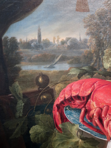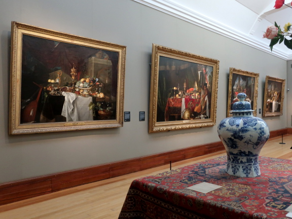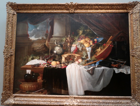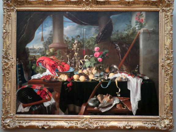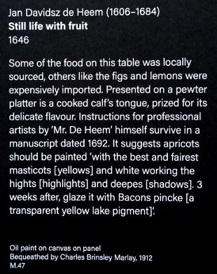 DE HEEM STILL LIFE Reviewed by ANDRE BEAUMONT For anyone wondering how to do still life well, Jan Davidsz de Heem provided a masterclass, all within the pigments and paint technologies available in the 17th century. The exhibition comprised six de Heem paintings, including two smaller ones belonging to the Fitzwilliam Museum, within whose Dutch School room it was held, and four large paintings that comprised an experiment by de Heem following his move to Antwerp in 1636, where he saw larger format works. These large works have been on loan to the museum for the exhibition and have not been seen together. ![]() ![]() ![]() Modern paints do not contain the heavy metals and toxic materials he used - this to some extent reduces their vibrancy ![]() Fruit and Rich Dishes on the Table, 1640, The Louvre - the first of his large paintings ![]() Still Life with Servant and Parrots (human figure by T W Bosschaert), 1641, Brussels City Museum ![]() Still Life in a Palatial Setting, 1642, private collection UK ![]() Although architectural features in the paintings are clearly imaginary, the steeple in the distance represents Antwerp cathedral ![]() A Banquet Still Life, 1643, Frederick Iseleman Art Trust The smaller paintings are significantly smaller but the detail shines: ![]() ![]() ![]() Flowers in a Glass Vase, c. 1660 ![]() |