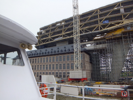 ANTWERP AT EASTER Reviewed by ANDRE BEAUMONT Antwerp is a good destination for Easter. The city authorities keep open the museums and many other attractions on the bank holidays and the open spaces of the city soak up any number of visitors without ever seeming to outnumber the locals. The opening of Rubens In Private was the star event of Easter 2015. Subtilted 'The master portrays his family' this exhibition draws together dozens of paintings and drawings of Rubens and his family, mostly by him, in his own house on Wapper. This exhibition deserves a review of its own but since the catalogue is only in Flemish a stab at it will not be made here. Since it is of international stature (it has the most famous of the Rubens self-portraits, loaned by H.M. The Queen, for example) and continues to run until the end of June it can still be visited. Nonetheless, any visit to the Rubens Huis deserves some attention paid to the grand buildings of his house and studio, a curious mix of Flemish and Italianate design, some by his own hand (the portico, garden pavilion, sculpture gallery and studio). One of these is the garden pavilion which is due to undergo some renovations and so deserving of some examination in case something changes and as one of the few buildings by Rubens as opposed to facades. A facade only by Rubens, probably his most successful, can be found nearby at the church of St Carolus Borromeus. It may surprise some, but the rest of the church is entirely by others. Facade of St Carolus Borromeus Also really not to be missed was fashion designer Dries van Noten's Inspirations, which runs until mid-July at Antwerp's ModeMuseum, better known as MoMu. This is the first time his work is displayed as a static exhibition and covers inspirations for his extensive lifetime work. Exceptionally for MoMu, there is no catalogue at all. MoMu An unintentional play of light but an 'Antwerp hand' appears disembodied The exhibition space is kept in the dark, the exhibits largely lit by spotlights and with some limited use of audiovisual. Gold inspiration The oeuvre is displayed alongside decorative and fine arts to highlight his stylistic vocabulary and the range of his techniques. Dries van Noten was one of the first to bring an enterprise to the Willemdok in the regeneration of the Het Eilandje district. He operates from a gigantic dockside warehouse near the MAS museum. MAS or Museum Aan De Stroom (Museum on the River) Antwerp is not just culturally rich. It is the world's biggest diamond trading centre, has Europe's largest petrochemical complex and its second largest port. To understand the city one has to learn about the port, which can be done either by visiting the permanent exhibition about it in the MAS or by going to see the real thing. A new port authority building is rising just behind the Hansa House at the end of the Kattendijkdok. Its lattice structure echoes a diamond, its concrete support the keel of a boat. Along with the MAS some really exciting contemporary architecture is rising at strategic points in the old docks. |
