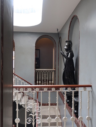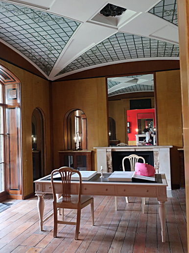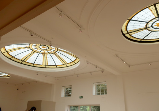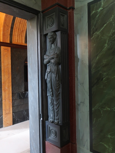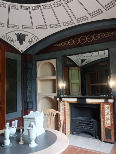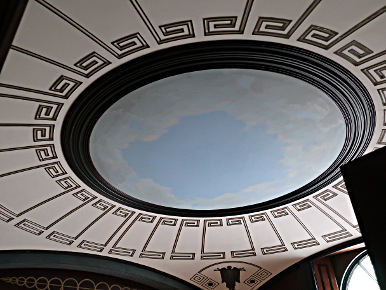 PITZHANGER MANOR Reviewed by ANDRE BEAUMONT We have no more intention of following the old rules than Sir John Soane did. You do not get ground breaking artistic creation without a willingness to set aside preceding rules. You do not get proper entrepreneurship without rule breaking. You do not get a proper pace of change without rule retirement. Soane, though, had a strong streak of conservatism. He kept the work by George Dance the Younger, his first employer as an architect, designed in a late Neoclassical style, in the Eating Room and the Upper Drawing Room, reserving his radical departures for those parts of Pitzhanger he rebuilt. He is also always within the bounds of classicism and this is evident at Pitzhanger. There are similarities in the stairwell and upper living accomodation to Horace Walpole's Strawberry Hill and there is also the eclectic collection of antiquarian, cultural and artistic artefacts but there is none of the Gothic style or, in places, haphazard planning of that earlier building. Eating Room The rules of Soaneian design are as ground breaking as any but he does not foist them on anyone else to adopt, though many architects have raided them since. That is rather sound. He was at his apogee during the Napoleonic Wars, when old rules were being cast aside all around - though not to the same extent in Britain. Maintaining a plurality of possibility was better than establishing rules for architecture, even if it were within his personality to do so. Upper Drawing Room Stairwell, top floor Sir John Soane's Pitzhanger Manor reopened on 16 March 2019, a handful of weeks ago. I first listened in on discussions for its renovation three decades ago. Soane did part of his Grand Tour with Frederick Hervey, ancestor of a late friend of mine, Nicholas Hervey. One of Soane's first commissions was at Petersham Lodge which I visited when it was owned by the financial manager of The Rolling Stones, before the digital era in music had got under way, with corridors strikingly adorned with multiple gold discs. That property and Strawberry Hill are not so far from the manor, with its 28 acres, which Soane eventually bought and rebuilt, but keeping the south wing with its work by George Dance. The level of natural daylighting to this wing is high and counteracts any impression those visiting The Soane Museum might have that Soane lived in gloomy spaces. When I first went to the Museum to inspect Adam drawings as a student the natural lighting in the south facing room I saw them in was excellent. Indeed, Soane's penchant for shallow-domed toplighting may have been influenced not only by antiquity but by his profession. Well used it can provide long hours of natural light to an architect at his drawing board. The Georgian houses with white walls, preferred by a certain generation of architects for their practices, were for a reason, too, though none can afford them now. Breakfast Room Painted domed ceiling inspired by the Pantheon Caryatids in Coade stone painted to look like bronze make as if to support the dome .... seen here with walls painted to look like marble and scagliola The comprehensive restoration, much more ambitious than what had been first planned, began in 2015. I do not think that Soane would have had the same patina to the finishes, having seen the Lincoln's Inn Fields houses of The Soane Museum when they were a bit neglected, but the restoration produces a dramatic tour de force and, as intended, you can imagine Soane living and entertaining here. Classic Soane .... mirrors, reflections, seepage of light, movement and vistas through rooms .... variations in light levels and imitation satinwood walls to avoid white grounds .... starfish ceiling inspired by Roman villas, trellis decoration .... in The Library The repetoire of Soaneian motifs is here, as adept at filling space as Adam, most of whose drawings he later bought preserving them for posterity in the Soane Museum. Anterooms were a tour de force for Adam and here the Entrance Hall and Vestibule combination are Soane's version with their multiple sources of leaked light. Note that this double storey hall has no staircase. The space is there to add vistas, routes, axes and grandeur. Amber light from above, like Mediterranean sunlight Leaked light from rooms Daylight from the fanlight The fourth side has a vista to the conservatory and beyond High up above the caryatids you see the source of the amber light, the tinted windows On display, a rigorously classical plan, with the staircase to the side of the entrance hall Pitzhanger Manor has a modern gallery as an annex. Its inaugural exhibition after the opening is of convex and concave sculptures by Anish Kapoor which fit in well with the shallow domes of both Soane's home and the skylights to the Gallery. Red to Blue, 2016 Alice - Oval, 2017 Through her looking glass Soane style domes. The wall openings even make a face but it takes a little reflection to notice |