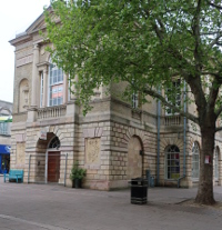 He is better known for his elegant interiors but the town is lucky to have here four external elevations by him, to all intents and purposes intact. Two of the panel contain music motifs.