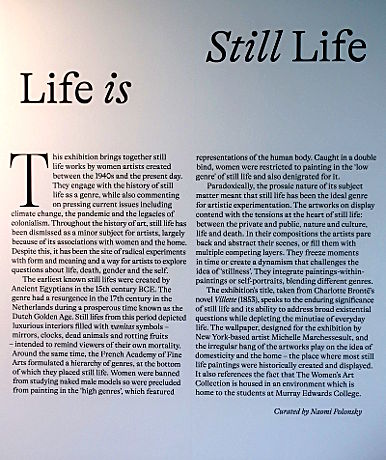 LIFE IS STILL LIFE Reviewed by ANDRE BEAUMONT I have never had the view that still life was a relegated or inferior art form, rather one extremely hard to do very well. When I see a religious or allegorical work by Rubens or Van Dyck I wonder at the feat of imagination, even though real models may have be used, but when I see a Flemish still life by one of their contemporaries, I learn a great deal about the way of life in the period and place that is largely absent in the great pieces of imagination. However, I am grateful to the Life is Still Life exhibition in The Women's Art Collection at Murray Edwards College, Cambridge, formerly New Hall College, for putting the point that women may have been relegated to this art form. I have learnt a great deal about still life, and acquired a new way of looking at it, at this show where the artists are solely women. Women have not been relegated to the art form during the time that most of these works have been produced but the genre is stronger for having so much female input. The genre is thus pushed higher up the pecking order, if you conceive things in hierarchy, which I frequently eschew. All the works here have been conceived in the domestic context. All the show's artists are mentioned here, though the light prevents proper photography of some works. We have lived through the millennia of personal hierarchies - of the rule of royalty, aristocracy and religion. We have lived through more than a century and a half of the collective and the corporate. All remain, some a bit ossified. Institutions are ossified power. We must now try, in terms of human development, to live through the age of the individual, however short or difficult to achieve it may be. The corporate is the vanguard trying to resist this. The remains of the collective, still fighting the personal hierarchies of old, doffs its cap to it in the wake. Maybe it is has a role at the wake, if it comes. (The pandemic has disabused us of the shibboleths that the state collective can provide - especially intellectually coherent healthcare, and war in Europe of those that corporations can provide - many will be left in poverty and hunger; in Britain we have had our first prime minister of the age of the individual and Brexit comes in behind the pandemic and Boris himself in influences on this nation in the 20twenties but the dice is still rolling. * To playfully steal a little, the collector is not the collective and there has been a terrible accident or two.) In this domestic context, the corporate is absent. Even the bleach bottle has the bokeh of obscurity. There are no brands in these still lives, only life. There is no commercial sponsorship. So still life is in the avant garde of a new society, creating refuge and life away from drear edges. Life is in still life. Life is still life. ![]() Shani Rhys James, The Collector, 1994 ![]() Arlie Panting, Haddock, 1955 ![]() Katy Stubbs, There Has Been a Terrible Accident, 2022 (glazed stoneware) ![]() Maeve Gilmore, Still Life, Pears, c.1949-50 ![]() Maeve Gilmore, Still Life, Pears, c.1949-50 ![]() Hilary Peels, Breakfast Nook, 2021 ![]() Margaret Thomas, Nativity Scene, 1960 ![]() Maisie Cousins, Tiger Morse, 2017 (exhibition board) ![]() Joy Labinjo, Perfect by Nature for Gift and Centrepiece, 2022 ![]() Sekai Machache, Hint of Blue 2, 2021 (digital print on aluminium) ![]() Phyllis Floyd, Pitcher and Bags, 2010 ![]() Anna Liber Lewis, Misha Bleach, 2012 ![]() Wall text * Coda |