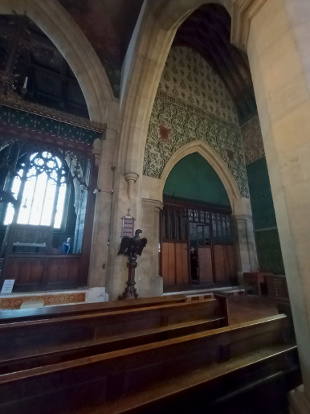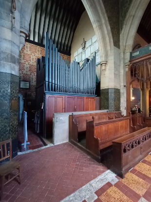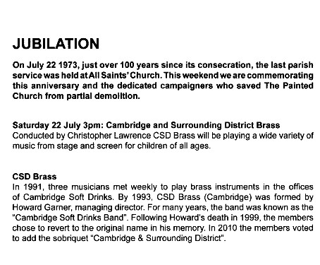 GEORGE FREDERICK BODLEY Reviewed by ANDRE BEAUMONT All Saints' Church is a Grade I listed church by the Victorian architect, George Frederick Bodley. Having recently been the venue for a Coronation Celebration on 7 May 2023, it hosted its own first jubilee event on 22 July 2023, when I attended a performance by the CSD Brass band. This is now a vigorously used venue for music and, as observed at the May event, the acoustic of the church suits brass well. I have elsewhere commented on hearing organ pipes through the flagstones, floors, seats and pews of churches [1] and there was so much brass on show that the pews resonated even more. I am fairly used to hearing pipes and the conductor explained to the audience the lengths of all the B flat and E flat instruments but I guess there is one difference: the pews here are screwed down through floorboards whilst in somewhere like Westminster Abbey there are flagstones. It does show that a Victorian architect like Bodley had honed down making a great church with an economy of materials. You walk on tiles where there is most traffic. Wood usually gives a much different acoustic to stone. It is the Victorian decoration that many admire but there is much craft to church design if you want it to last the test of time as, indeed, shown by those who did the restoration. There were some interesting instruments on show like a flugelhorn, a cornet section and a baritone euphonium. The jubilee theme was carried through the programme, to the extent that was realistic. It is also the 400th anniversary of William Byrd's death so we started with an adaptation of the Agnus Dei for 5 voices. It is the 100th anniversary of the Disney Corporation so there was something from Repunzl's Tangled Adventure and Ghost Riders in the Sky. ![]() The CSD Brass band at All Saints' Church ![]() There was the 6/8 time march Blaze Away, Whitney Houston's One Moment in Time, Ennio Morricone's The Mission with a cornet taking the part of an oboe, the Twelfth Street Rag and the cornet section playing the ragtime Buster Strikes Back. There was some contemporary composition and, indeed, much more. ![]() ![]() The church was packed .... with children over 50 ![]() The programme for the Coronation Celebration the day after the coronation ![]() The other G.F. Bodley church and interior in Cambridge, the listed Queens' College Chapel [2] ![]() I was impressed by this school of drama's end of term day out in Cambridge and here you did get children - but so skilled you would never know - I always did think brains worked best at 17 ![]() With the pews temporarily vacated by the Contemporary Choir ready to perform, here was packed, too - the other choirs are the Chamber Choir and the Consort of Voices ![]() The Cam from the mathematical bridge at Queens' On 5 November 2023 I returned to All Saints' Church to a concert by Cambridge Voices whose final piece was a commissioned hymn from Ian de Massini incorporating a poem by George Frederick Bodley. ![]() We were generously provided with the score as well This was a splendid song by a very talented choir to conclude the programme. It was the only one accompanied by the 1864 Foster & Andrews organ, an organ in original condition which I had only heard in recitals before. There is evidence that Bodley thought a lot about the sound of the organ, which is contemporary to his design, and hearing it accompanying church music is what was intended all along as it does not have the long pipes of organs installed with recitals in contemplation. ![]() The organ section of the hymn was glorious leaving me wanting an organ voluntary as we left the church. Here we have an opening though - perhaps Ian de Massini and the Cambridge Voices (or others) could come back to perform church music that is accompanied by the organ, with organ voluntaries - which were originally conceived to entertain the congregation - thrown in beginning and end? Then we will really hear the organ as Bodley intended. |