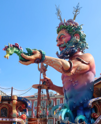 I know the king of the oceans. I saw him at six years old being caught by a local and stuffed in a duffle bag, from a stormy sea before the shingle beach of the Hotel Beau Rivage, which used to be at the front of its block, from which we had descended for an early morning walk. I would restore him if I could. When a masked figure makes what might be a trident sign to me I carry on with my photos, smiling at the tourist who nearly walked into shot. As I pass the figure I do not smile, look or acknowledge as I drop a valueless coin. I know. Au carnaval, the hierachies are reversed. My parents met in this city.