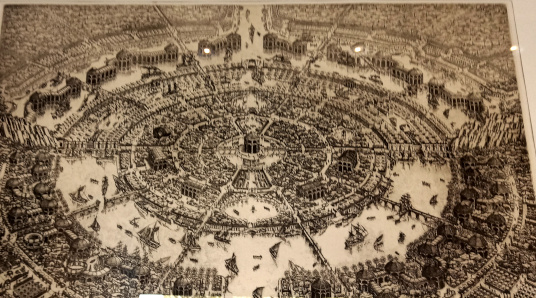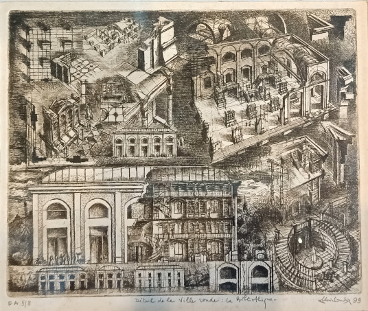 ALAIN COMBIER: ARCHITECTURES Reviewed by ANDRE BEAUMONT ![]() (Lower image: La Funiculaire, 1985) ![]() (read on under drawing board) ![]() ![]() Suffice to say, he's right - reflections are the bane of exhibitions, especially for photography - but everything else he says is fascinating! (I am assuming, in 2025, your electronic device can translate for you, if needed) ![]() ![]() ![]() It is worth noting that though his formal education went elsewhere he had always wanted to do fine arts and so in that area he is entirely self taught. As soon as I saw he liked Tuscan columns that was enough for me. So do I. More seriously, if you are doing landscape architecture you have a fair chance of getting your conceptions realised. If you are doing architecture or naval architecture, somewhat less and if you are a grand conceptualiser in drawings, like Ledoux or Piranesi, virtually none but your influence can stretch through the centuries. If you are a politician you may have pharonic ambitions to have something named after you, like the Pompidou centre, (though every other academic lawyer I have met in Cambridge has claimed responsibility for having brought about the building of the law faculty) but may not be skillful enough to get your name attached - Ken Livingstone did more to bring about the 2012 Olympics in London but Boris got most of the credit. Who will ever end up with his name on HS2? Nigel Farage? It won't be Brexit he will be remembered for but exit at Old Oak Common. Returning to the higher achieving M. Combier, the grand conceptual drawings he has been doing for 40 years alongside his professional work are in the Piranesi mould. He is influenced by Ledoux's Ville Ronde, which he imagines (the drawing where the sailing ships cannot escape), and the library is an imaginary building in that town. This kind of drawing is rare in today's world but anchors us properly in our heritage - his father did archaeological work on which he also drew - in a time when AI threatens to create anything, though lacking in any anchors so that it might as well be on Mars, for that is where the tech lords want to go. His is a pretty kind of joyful drawing. Especially so as he seems to have done them for no monetary reason, an ocean away from neoliberal values that seeks to assign a numerical quantity to everything which, in the next phase, reductio ad absurdum, tech will reduce to a binary code. ![]() Ville Ronde ![]() The Library ![]() The Library - light study, 1991 ![]() The Library - perspective study, 1991 ![]() Engraving of the tower of Babel or the tower of 170 metres,1999 ![]() The brick cathedral, 1979 ![]() |