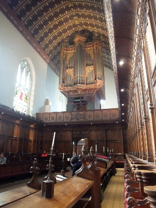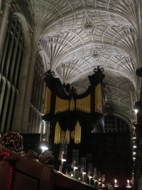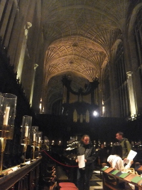This is a splendid venue for organ music. Hold onto the oak arms of the rearmost pews - those against the walls - and you can feel the 16 foot pipes vibrate right through you. On to King's College Chapel for another