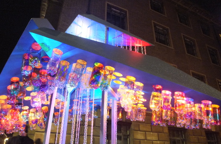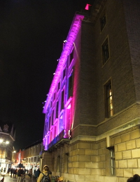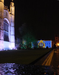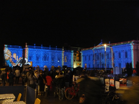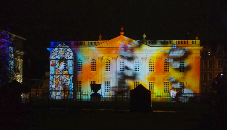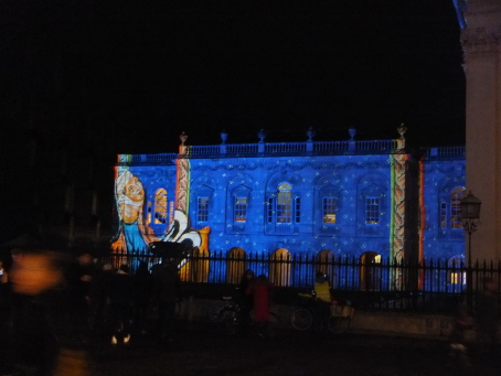 e-LUMINATE FESTIVAL 2017 Reviewed by ANDRE BEAUMONT 10 February 2017 Across the lawn in front of the Senate House, of a moonless night, amidst the occasional snowflakes in the East Anglian air, Cambridge's 5th e-Luminate Festival began today. (Downloadable video, 11.3 Mb, 19 seconds). Here are early first day images. Senate House and Old Schools Old Schools, the administrative heart of Cambridge University Projection cycling onto the Senate House .... and here, nearest to Kings' College, onto the left of the Old Schools Old Schools from the space in front of Great St Mary's .... and with spectators in it The canopy of the Liter of Light installation near the Guildhall .... made up substantially of illuminated plastic bottles Wow! |