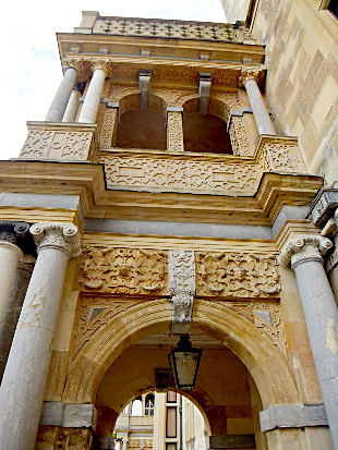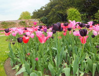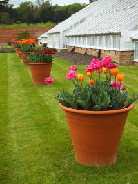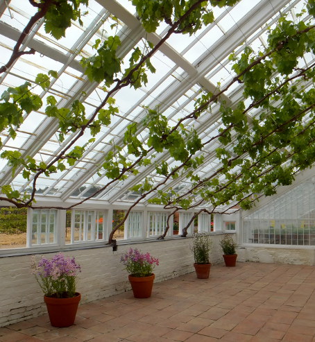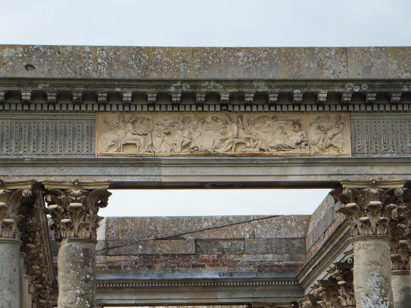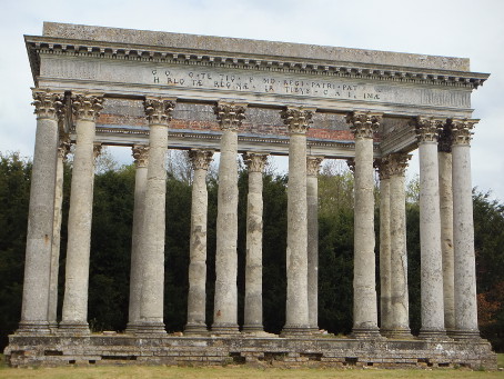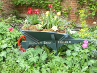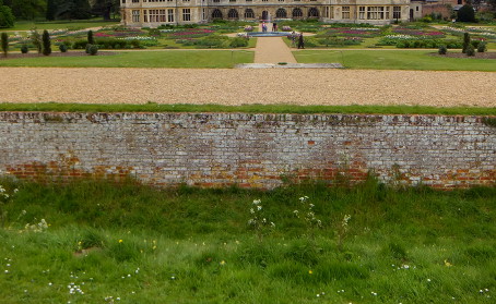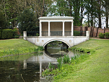 THE GARDENS OF AUDLEY END Reviewed by ANDRE BEAUMONT The gardens of Audley End were laid out as parkland largely conforming to a plan drawn up by Lancelot 'Capability' Brown from 1763. Audley End The Cam, previously canalised where it ran through the estate, was made more sinuous by Capability Brown and though much a smaller river in volume than at Cambridge was given the illusion of being broad in front of the house, so much so that you might now be forgiven for thinking you were on the Backs. With Brown the appearance of an entirely natural landscape is given with sweeping lawns, curving drives, hidden ditches known as ha-has keeping out livestock in place of fencing, artificial lakes or widened rivers and woods or clumps of trees planted to give the sense of large but private parkland extending to the horizon. Audley End sits in the valley helping the sense of the estate's enclosure. The parterre at the rear of the house and the paths would have been removed after 1763 by Capability Brown along with any formalised landscaping. The parterre garden from the other side of the ha-ha A contemporary of Capability Brown was the Scottish architect Robert Adam who was commissioned to remodel part of the house. In the Elysian Garden, through which part of the flow of the canalised Cam is directed, there is an elegant Adam bridge. In the18th century there was also a gateway from the parkland to the Elysian Garden on top of which the Coade stone lion below sat. Not all the wonders of the gardens have 17th or 18th century origins. There is a vast recreation of an organic Victorian kitchen garden that in its heyday, around 1900, extended to 9 acres. There was a time when producing grapes, let alone wine, was a wonder to behold in England and impossible outdoors. The Vinery is one of the oldest and largest in the country. There is nothing like a temple in the garden for status though. Temple of Concord glimpsed through the fountains of the parterre The Temple of Concord, built in 1790, a generation after the Capability Brown and Robert Adam era, it is a Grade I listed monument and about to undergo renovation, a considerable task as 14 of the barrels of the columns will have to be replaced. |
