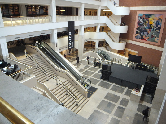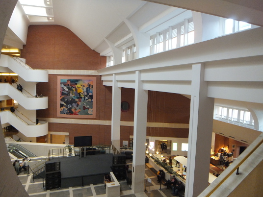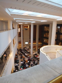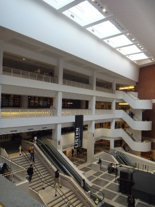 THE BRITISH LIBRARY Reviewed by ANDRE BEAUMONT The London precedent for a modernist internal space like that now found in the Design Museum was set by a design commenced forty-five years ago for the British Library by the modernist architect, Professor Sir Colin St John Wilson. The British Library is a quintessential British institution with a modern attitude. Its interior modernism is still very fresh and it offers lovely interior spaces to walk around. For the exterior, 'Sandy' Wilson was partially influenced by his friend, Sir James Stirling, whose career evolved to make him the leading post-modernist architect in Britain. Wilson, though, remained firmly within the modernist canon especially for the interior, his skill at toplighting museum, library and study spaces having been well-honed elsewhere. The exterior finishes were considered dull at the time but they have weathered the British weather incredibly well in contrast to, say, the Le Corbusier-inspired shuttered concrete used by an earlier generation of architects like Sir Denys Lasdun and Sir Basil Spence. There is a lot of detail, like doors, designed by Wilson so he continued in a tradition set by Adam, Mackintosh and Frank Lloyd Wright in designing the detail down to the door furniture. At the time I wrote a piece about the library I had just spent £30,000 on a pair of hardwood external doors I had designed for Farringdon Station and he was not surprised at the cost, though I was. Architecture can be about light, both external modelling of it by buildings and in interiors, and he used it better than anyone I knew. Look at external light levels and how much has been brought in. Scarcely .... but I had done some work on St.Pancras behind! The exterior led it to be likened to an academy for secret policemen, a felicitous turn of phrase, but construction proved the point of those roofs with breaks in them - to let light in. |