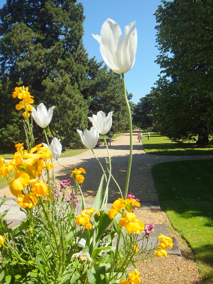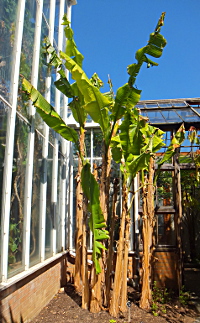 Read our Copyright Notice click here For publication dates click here A tennis court still borders the botanic garden but it is best not to play tennis there. These days you seem to get transformed into some kind of triffid, scary or otherwise. The world is going bananas but do sit down! Do! ***** More In Festive Mood and In the Twilight