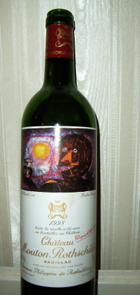 Read our Copyright Notice click here For publication dates click here Ch. Mouton Rothschild has since 1945 commissioned an artist for each vintage's label. Roufino Tamayo agreed in 1990 to create an original work for the label but died in 1991. His family, wishing to see his intention fulfilled, provided El Brindis, a man proposing a toast, for the 1998 vintage.