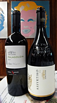 The elegant bottles are unusually heavy and the producer calls the estate the "New Old World", which is probably true. It has phylloxera tolerant 100 year old Assyrtiko vines. Phylloxera does not flourish in sandy soil at high altitude.